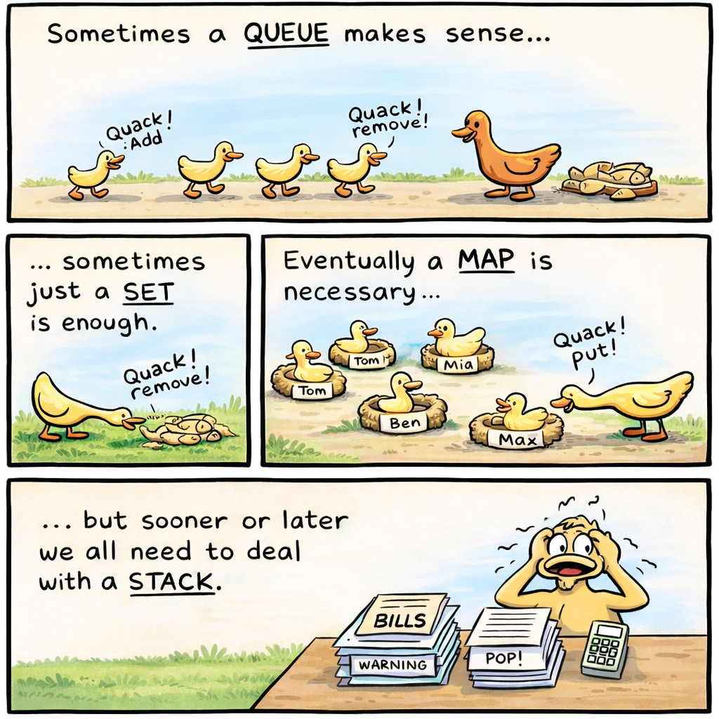 Queue, Set, Map und Stack sind abstrakte Datentypen (ADTs).