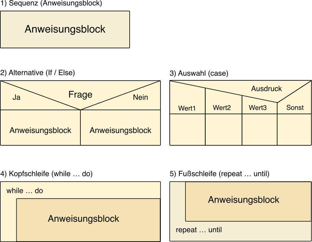 Struktogramme verwenden folgende Grundstrukturen:
