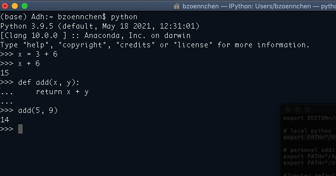 Mit dem Befehl ipython starten Sie einen anderen Kommandozeileninterpreter zum interaktiven Arbeiten.