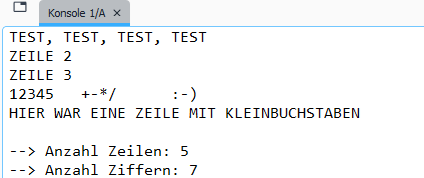 Abb. 5.5 Beispielausgabe beim Einlesen einer Textdatei (Aufgabensammlung PA3.11).#