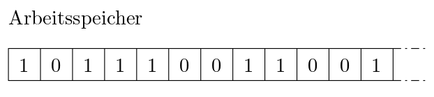 Den Arbeitsspeicher können wir uns als lange Liste von Bits vorstellen: