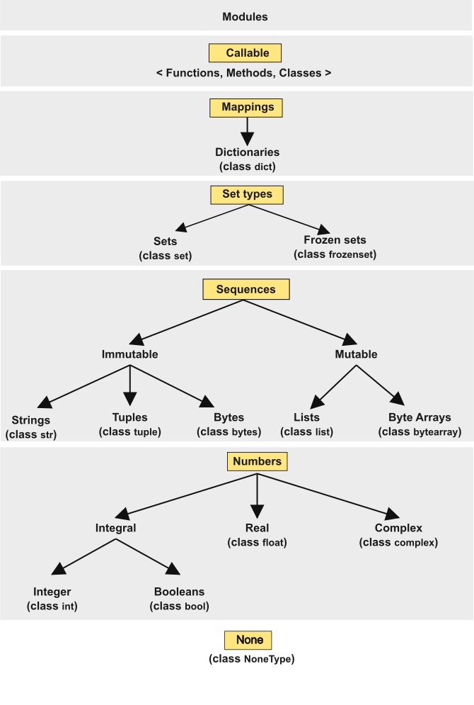 Die von Python vorab definierten Datentypen nennt man built-in Datentypen. Ziel der Veranstaltung ist es dass sie die built-in Datentypen kennen, die in der Praxis besonders häufig verwendet werden.