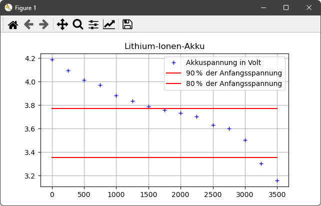und anschließend Kennwerte bestimmen (z.B. wann die Spannung unter 90% bzw. 80% der Anfangsspannung fällt).